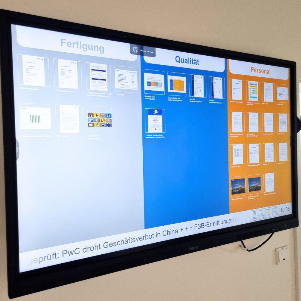 Fertigung, Qualität, und Personal. Keine Zettelwirtschaft, kein manuelles Nachhängen, kein Übersehen. Dank zeitgesteuerter Inhalte und Zielgruppenfilterung bleibt die Kommunikation punktgenau und effektiv. Auch in der Produktion ein Gewinn.
