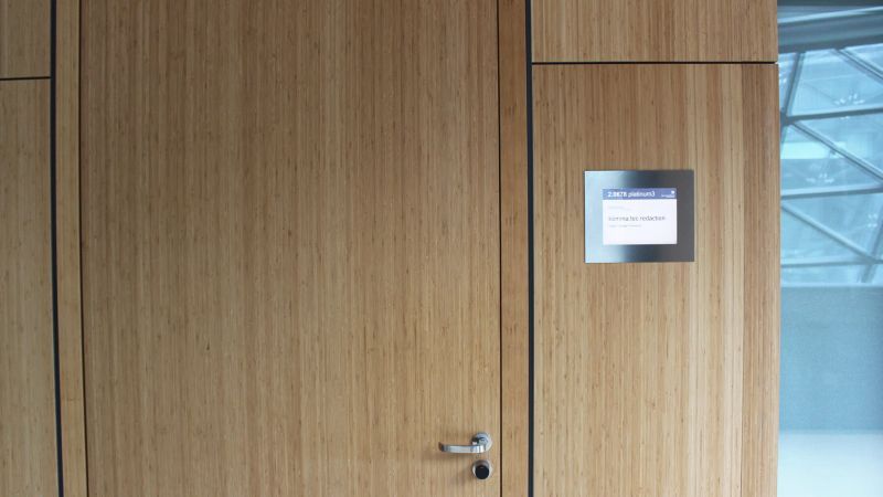 In einer Umgebung mit wechselnden Raumstrukturen, mehreren Zugängen und mehreren Ebenen ist klassische statische Beschilderung kaum ausreichend: Räume können schnell andere Funktionen übernehmen, Veranstaltungsbereiche verschieben sich, und klassische Schilder würden permanent manuell angepasst werden müssen. Das führte zu möglicher Verwirrung, Inkonsistenzen und hohem Pflegeaufwand.