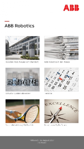 - Entwicklung eines touchfähigen Mitarbeiterinformationstemplates mit drei Ebenen, das ABB selbständig mit Inhalten befüllen kann