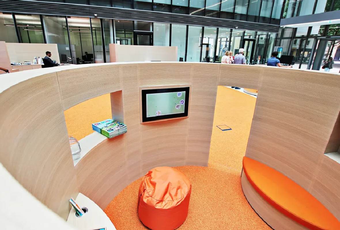 - Digitale Empfangsmonitore & Touch-Tisch im Eingangsbereich, um Besucher willkommen zu heißen und erste Orientierung zu bieten.